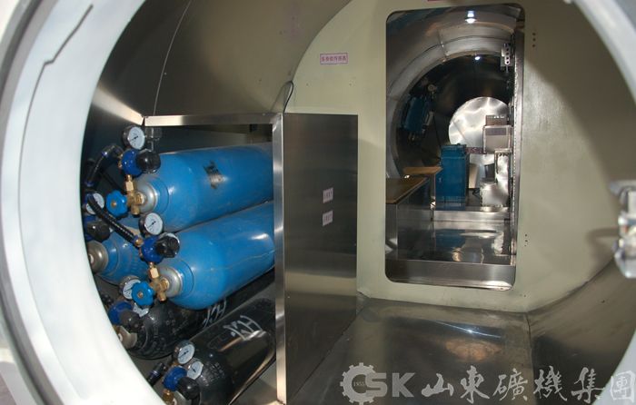 所设计的平台主体结构为卧式筒体,变径设计采用过渡锥壳结构,一端为固定不可拆密封结构,另一端为可拆卸的端盖封头。平台主体圆筒段名义壁厚为38mm,内径3.5m,长7.5m,实物图如图5.2所示。底部封头为内压标准椭圆封头。端盖封头为内压标准椭圆封头,壁厚为44mm,内径2.5m,深度为0.625m,直边高度为40mm,实物图如图5.6所示。端盖封头与筒体采用法兰连接形式,设计为窄面整体法兰,材料为16Mn。窄面法兰螺栓布置,共有72个公称直径为48mm的螺栓,其材质为35CrMoA,实物图如下图所示。平台为卧式容器,采用双鞍式支座,选用A型轻型固定式鞍座,材料选用与圆筒材料相同为Q345R,工作温度范围0~250℃。鞍座与圆筒相连接的垫板与圆筒材料相同为Q345R.