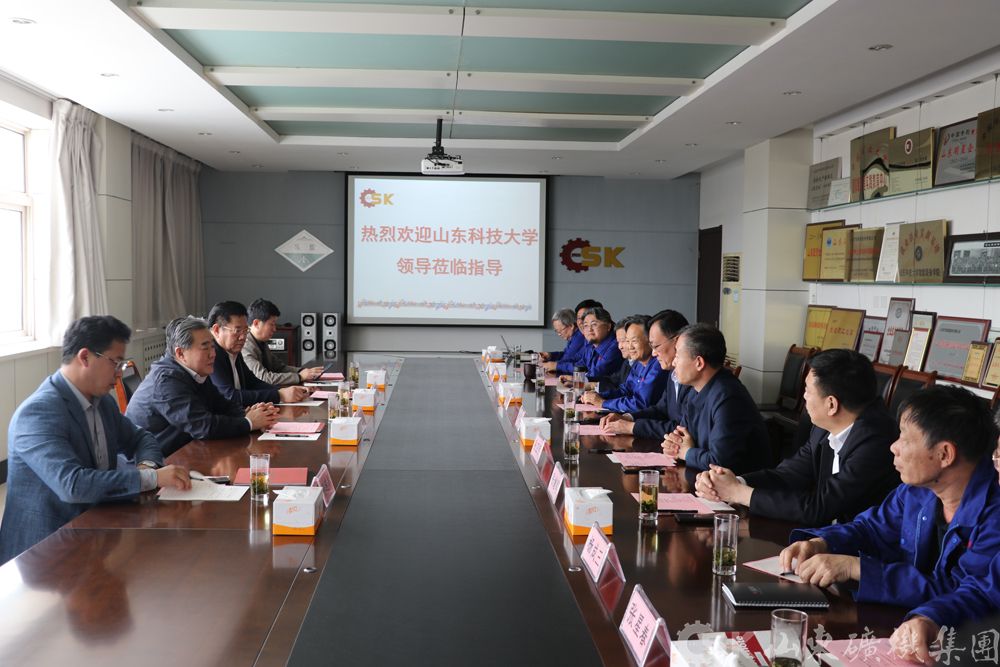 首先,与会人员在会议室进行了座谈,公司董事长赵华涛对公司的发展情况进行了详细的介绍,对公司未来实现更大发展布局中遇到的人才和技术瓶颈开诚布公的进行了交流,对于同山科大的合作渊源、取得的成绩成果及公司众多高层领导、员工都是学校校友等各种历史渊源进行了交流,同时表达了在新时期公司将同山东科大在更高层面、更深层次建立合作关系的意愿,表示公司有机制优势和上市公司的资金平台优势,为接下来双方的深入合作奠定了坚实的基础。